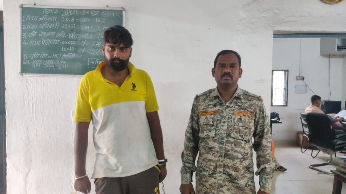 रायगढ़। जूटमिल पुलिस की पेट्रोलिंग द्वारा मुखबिर सूचना पर छातामुड़ा अटल चौक के पास सार्वजनिक स्थान में स्टील के धारदार हथियार (फरसा) से लोगों को डराते धमकाते अरोपी उमाशंकर साहू पिता रमेश साहू उम्र 22 वर्ष, निवासी सांगीतराई डीपापारा थाना जूटमिल रायगढ़ को पकड़ा गया है । थाना प्रभारी जूटमिल निरीक्षक रामकिंकर यादव को मुखबिर से युवक के हथियार लेकर आमजगह पर उत्पात मचाने की सूचना मिली थी जिस पर पेट्रोलिंग को मौके पर भेजकर कार्यवाही कराया गया । आरोपी के कृत्य पर थाना जूटमिल में धारा 25 आर्म्स एक्ट की कार्यवाही कर रिमांड पर भेजा गया है । आर्म्स एक्ट कार्यवाही में थाना प्रभारी जूटमिल निरीक्षक रामकिंकर यादव, प्रधान आरक्षक खीरेन्द्र जलतारे, आरक्षक सत्या यादव और विनय तिवारी की अहम भूमिका रही है ।
