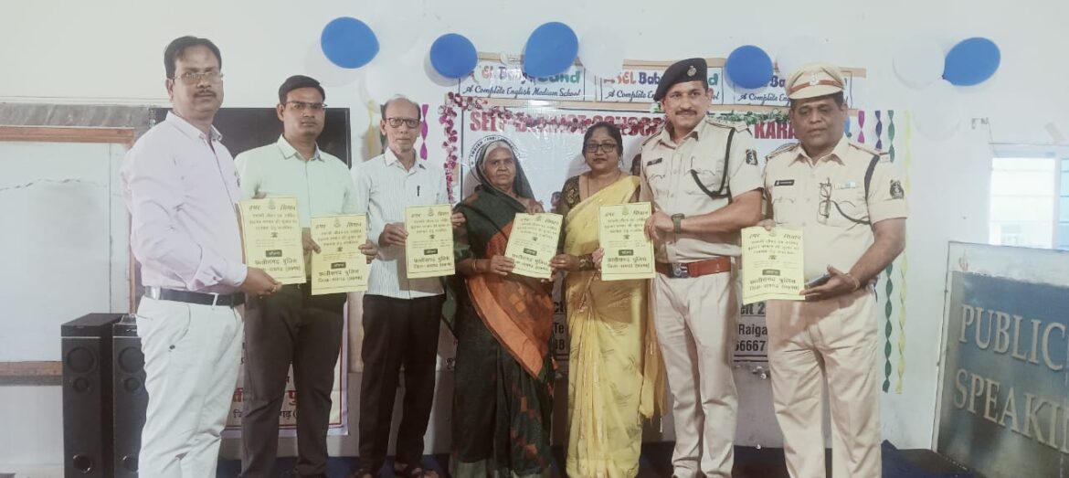 रायगढ़। वरिष्ठ पुलिस अधीक्षक सदानंद कुमार के मार्गदर्शन पर आज स्थानीय असेल बेबी लैंड स्कूल प्रांगण में आयोजित कार्यक्रम में सीनियर सिटीजन सेल द्वारा उपस्थित स्कूली बच्चों व उनके पालकों के मानस पटल पर वृद्धजनों के सम्मान के प्रति समर्पण की भावना लाने के उद्देश्य से नगर पुलिस अधीक्षक रायगढ़ अभिनव उपाध्याय द्वारा वृद्धजनों का सम्मान किया गया। उन्होंने कार्यक्रम में उपस्थित बच्चों को उनके पालकों को बताये कि हमें हमारे बुजुर्गों का ध्यान रखना चाहिए यह हम सब की निजी जिम्मेदारी है।