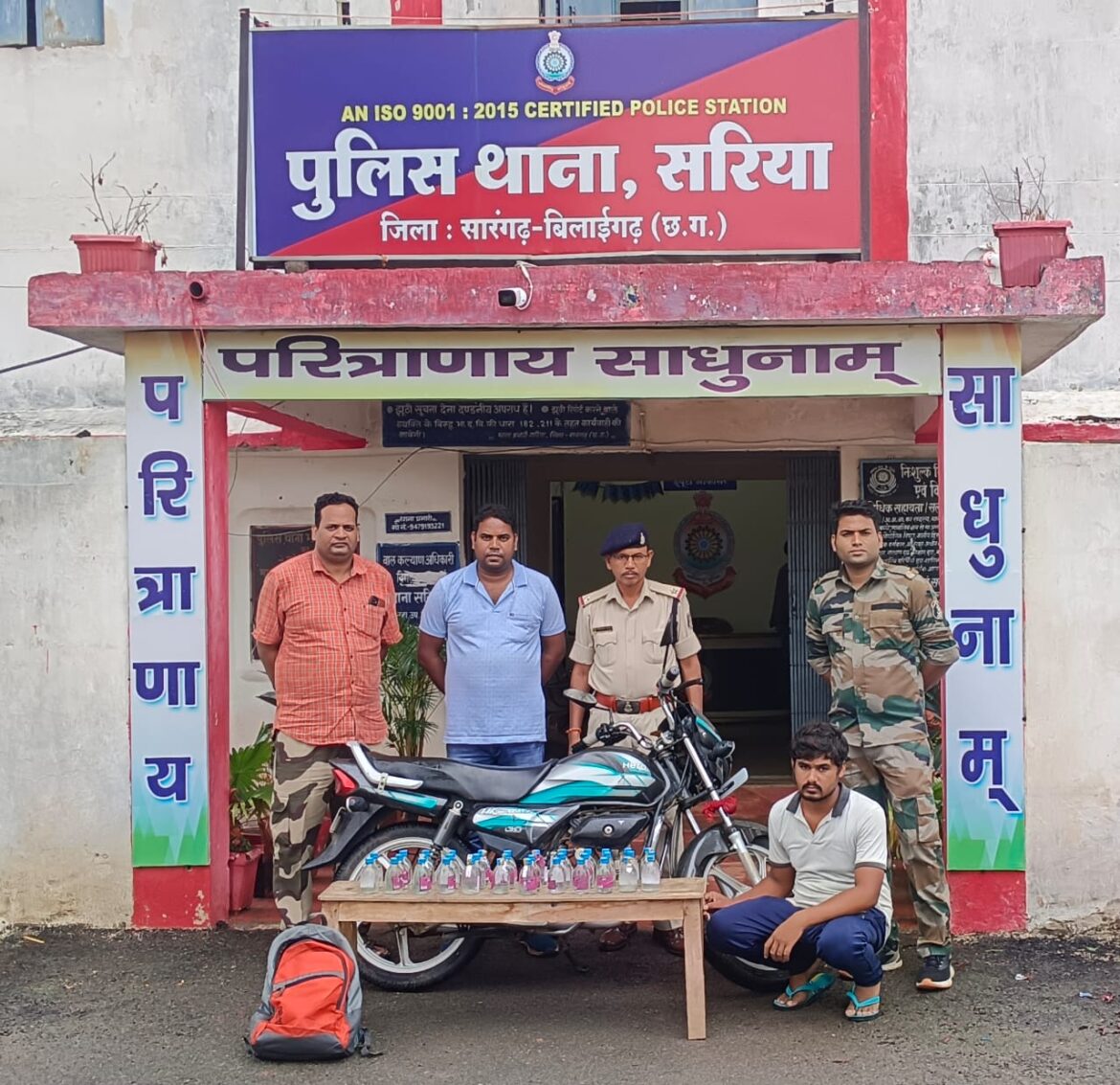 रायगढ़। वरिष्ठ अधिकारीयों द्वारा जिले मे अवैध कार्यों में संलिप्त व्यक्तियों के विरुद्ध कार्यवाही करने हेतु निर्देशित किये गए । जिनके निर्देशानुसार 25 जून को थाना प्रभारी सरिया विजय चौधरी को मुखबिर के द्वारा मोबाइल से सूचना मिली कि शत्रुघन साव सरिया भठली चौक की ओर से लुकापारा की ओर अवैध रूप से देशी प्लेन मदिरा शराब बिक्री हेतु मोटर सायकल से ले जा रहा है।