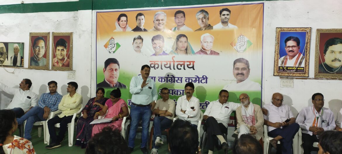 रायगढ़। जिला कांग्रेस कार्यालय में 2 अक्टूबर को निकल जाने भरोसे की यात्रा और आगामी 4 अक्टूबर को होने वाले कांग्रेस महासम्मेलन के संबंध में रविवार को बैठक आयोजित की गई। जिसमें आगामी विधानसभा चुनाव के लिए आवेदन करने वाले प्रत्याशी और कांग्रेस इकाई से जुड़े पदाधिकारी तथा कार्यकर्ताओं को बुलाया गया। इस बैठक में सभी कांग्रेसियों से उनका सुझाव मांगा गया और आगे की कार्य योजना बनाई गई।