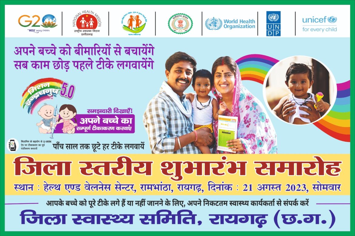 कलेक्टर रायगढ़ तारन प्रकाश सिन्हा एवं मुख्य चिकित्सा एवं स्वास्थ्य अधिकारी रायगढ़ डॉ. मधुलिका सिंह ठाकुर ने सघन मिशन इन्द्रधनुष अभियान के दौरान आयोजित सत्रो में दी जाने वाली सवाओं का लाभ लेने हेतु आव्हान किए है।