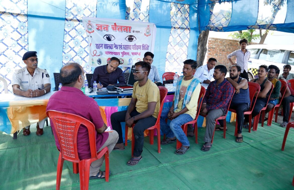 रायगढ़ यातायात पुलिस ने “जन चेतना” के तहत वाहन चालकों को कराया स्वास्थ्य और नेत्र परीक्षण