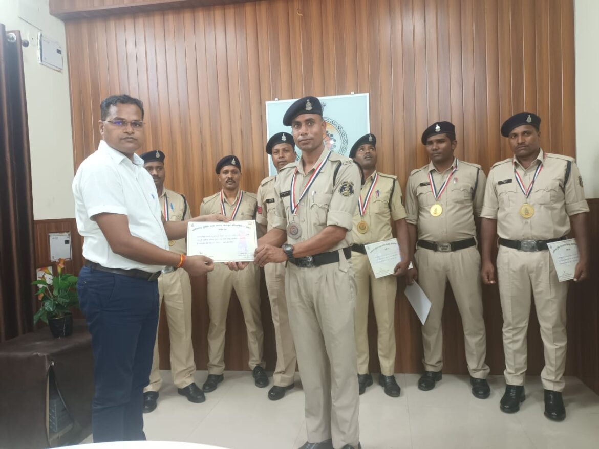जिला पुलिस रायगढ़ में पदस्थ एथलेटिक्स का नेशनल खिलाड़ी आरक्षक अचिन्त गबेल थाना अजाक प्रतियोगिता के 1500 मीटर दौड़ में द्वितीय स्थान प्राप्त कर रजत पदक हासिल किया । जिले का होनहार खिलाड़ी अचिन्त गबेल राष्ट्रीय खेलों में 6 स्वर्ण, 3 रजत और 3 बार कांस्य पदक प्राप्त कर चुका है । अचिन्त गबेल का भी ऑल इंडिया पुलिस मीट गेम्स में 10 किलोमीटर क्रॉस कंट्री दौड़ सिलेक्शन हुआ है । सम्मान कार्यक्रम दौरान कार्यालय के मुख्य लिपिक श्री जे.पी. चेलकर और समस्त स्टाफ ने प्रतियोगिता में बेहतरीन प्रदर्शन के लिये बधाई और ऑल इंडिया गेम्स के लिए शुभकामनाएं दिया है ।